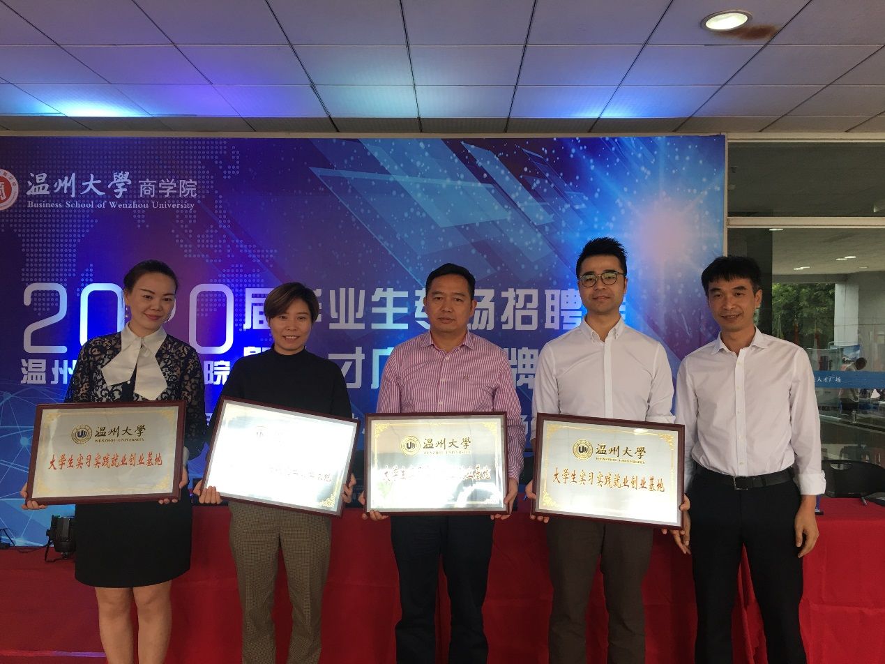 胡振华院长各自代表双方签订共建实习基地协议,揭开银校合作共谋发展的新篇章。温州大学招就处黄文浩处长授予招商银行温州分行“大学生实习实践就业创业基地”铭牌,双方将共享资源,共建平台,促进产学共赢。