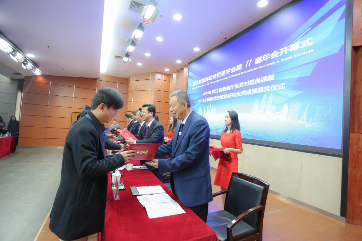年会开幕式由学会副会长、浙江商务研究院院长兰健主持。大会对学会2019年国际经济贸易研究优秀成果奖获奖作者进行了表彰。温州大学党委副书记庄兴忠、浙江省社科联社团处处长郁兴超致辞。开幕式上,庄兴忠副书记介绍了温州大学办学成绩和银河赌场-澳门银河赌场官网