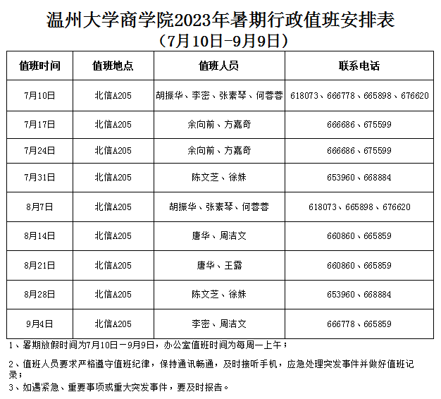 银河赌场-澳门银河赌场官网 2023年暑期行政值班安排表