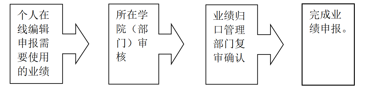 个人登陆“人事信息系统”,在“业绩数据中心”模块中,对需要使用的业绩按分类在系统中进行审核申报,具体流程如下: