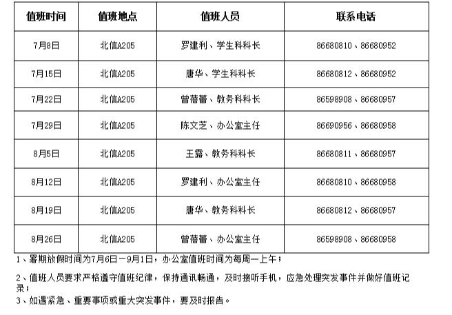 银河赌场-澳门银河赌场官网 2024年暑期行政值班安排表