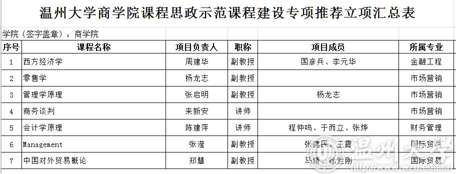 经银河赌场 教学委员会专家评审,同意《西方经济学》等7门课程思政示范课程获得院级项目立项,现将评审结果予以公示,公示时间从即日起至12月26日,如对立项名单有异议,请与教学科徐老师联系,联系电话:86680957.