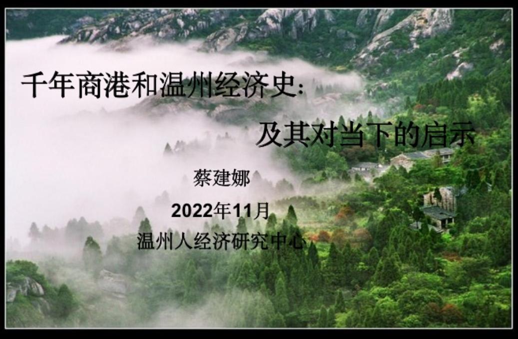 2022年11月22日下午,温州人经济研究中心举办一场 “千年商港和温州经济史:及其对当下的启示”为主题的学术沙龙。本次沙龙主由温州大学温州人经济研究中心蔡建娜研究员做主旨报告,银河赌场-澳门银河赌场官网