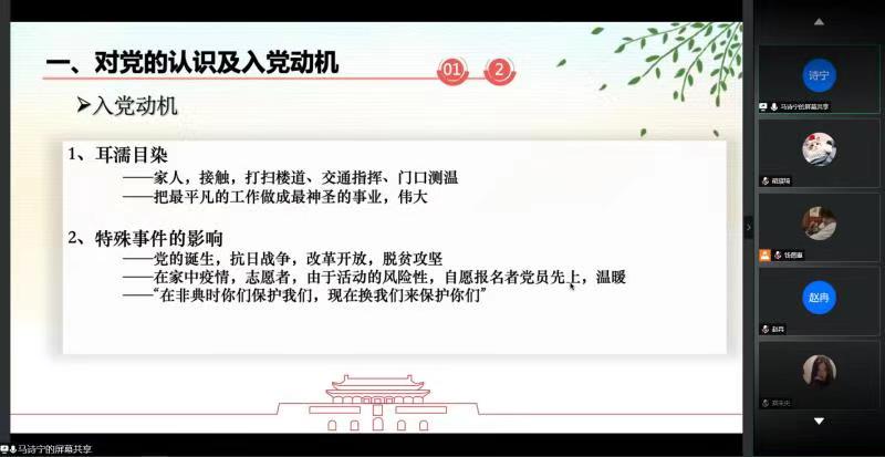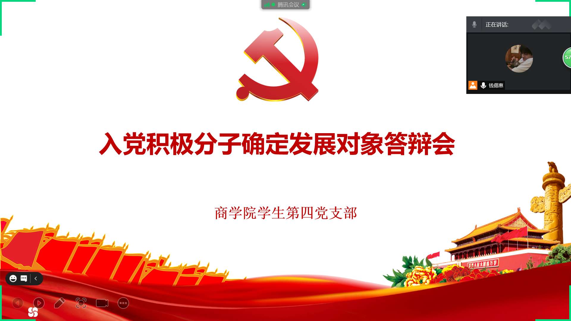 学生第四党支部入党积极分子确定发展对象答辩会通过腾讯会议线上举行。
