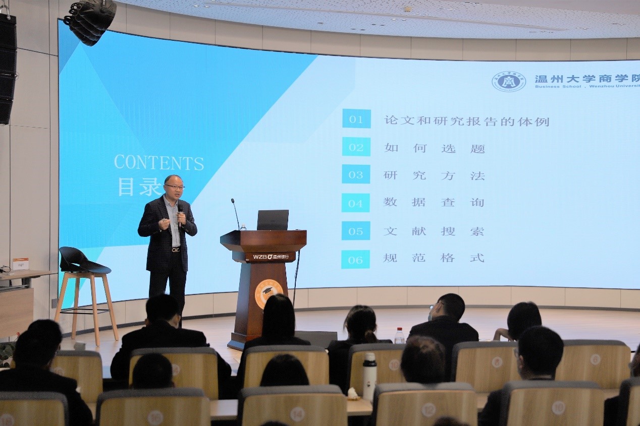 周建华老师结合自己将近二十年撰写论文和研究报告的心得经验,分别从论文和研究报告的体例、如何选题、研究方法、数据分析、文献查找、格式规范等六个方面进行分享。对于如何选题,周老师指出命题应该贴切、合适,不可过大、过空、过玄、过旧,并结合一些统计表深入浅出地讲解了如何选题,列举了选题时的常见不当之处,重点讲解了摘要、引言、文献综述撰写的要点和相互关系。针对文献和数据查询部分,现场演示了几个重要的数据查询网站的使用方法及注意事项。对于格式要求,指出学术用语需规范,插图要精选,要求清晰、线条均匀、主辅线分明,论文需层次清晰,让人一目了然等。最后总结指出,一篇合格的论文需要坚持不懈的努力,选题时要求理论逻辑严谨、联系时代实际背景,同时具备一定的创新点。写作时要注意层次分明、题目精简、图表美观、逻辑清楚、数据证明充分。在提问互动环节,周老师风趣生动地耐心解答,提醒青年人才们要注意平时的积累,并对职员们的提问给出建设性的意见和建议。
