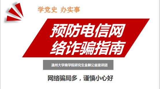 在整理了相关的资料后,宣讲团成员进班、进寝室就代写论文的诈骗手段以及如何有效识别诈骗进行宣讲。活动负责人强调,研究生发表论文要多了解正规、成熟渠道,不要随意听信网络广告,试图走捷径、“抄近道”就会让不法分子有机可乘。同时,如发表论文时遇到要求通过微信、支付宝等方式转账至个人账户的情况时,应当多思考,切勿轻信对方作出的承诺,以免自己的财产遭受损失。