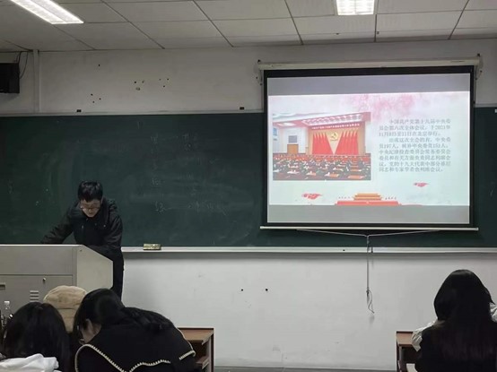 本科生第四党支部开展“学全会精神·当为民先锋”主题党日活动,专题学习传达《中国共产党第十九届中央委员会第六次全体会议公报》。
