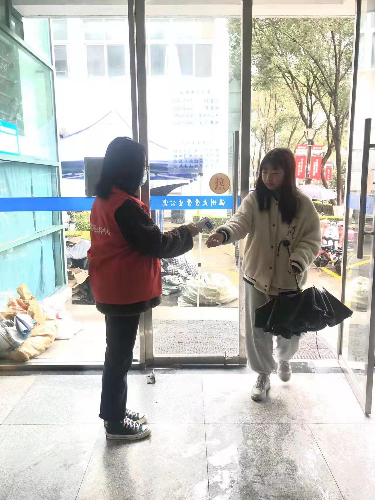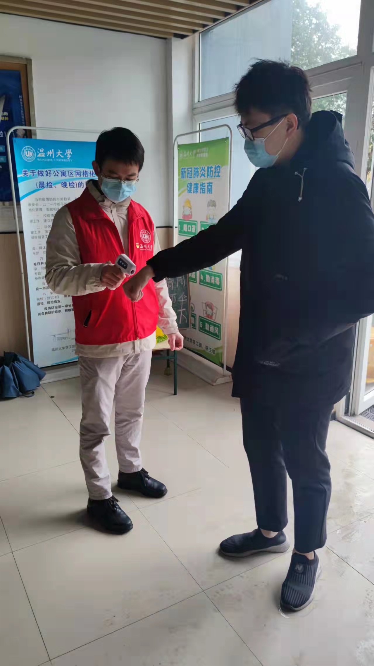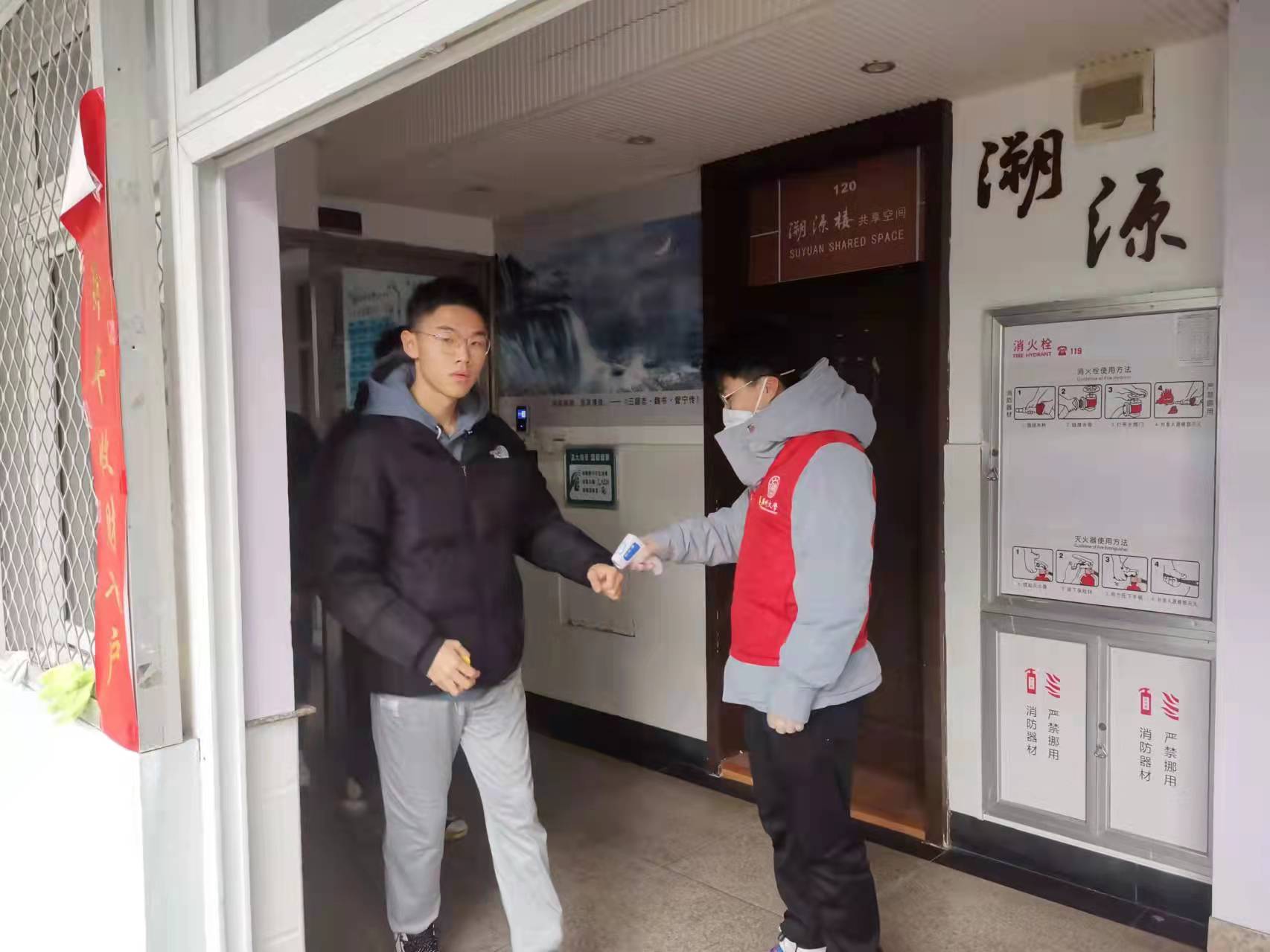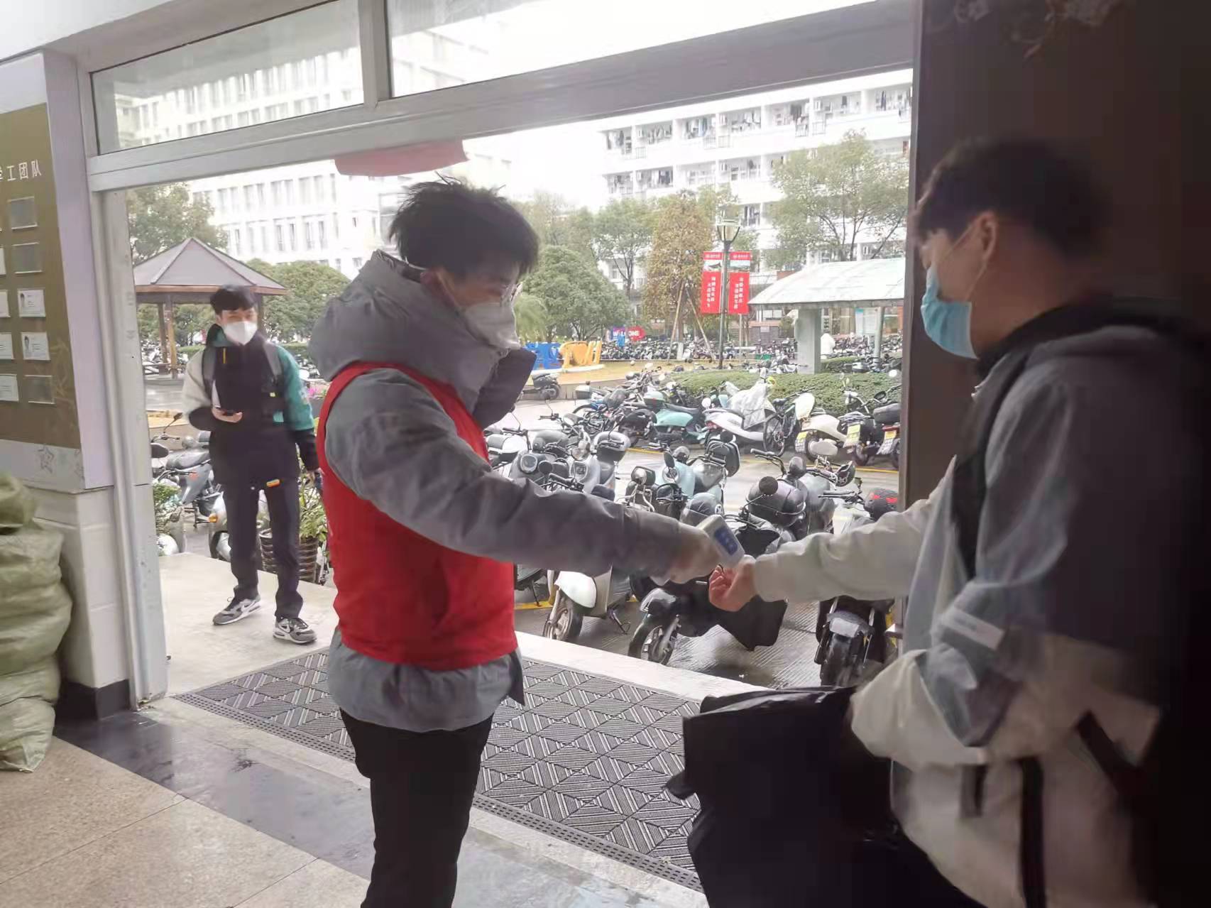 党委还组建了“疫”心“疫”意党员志愿服务队,6个党员小组每日组织学生在2个生活区的6个楼栋为出入学生测量体温,宣传防疫知识。