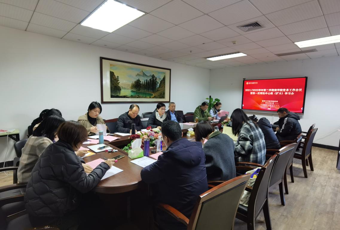 党务工作会议暨第一次中心理论组(扩大)学习会。院党委书记郑彩莲主持会议,班子成员、党委委员、纪委委员、师生支部书记、各科室负责人参会。