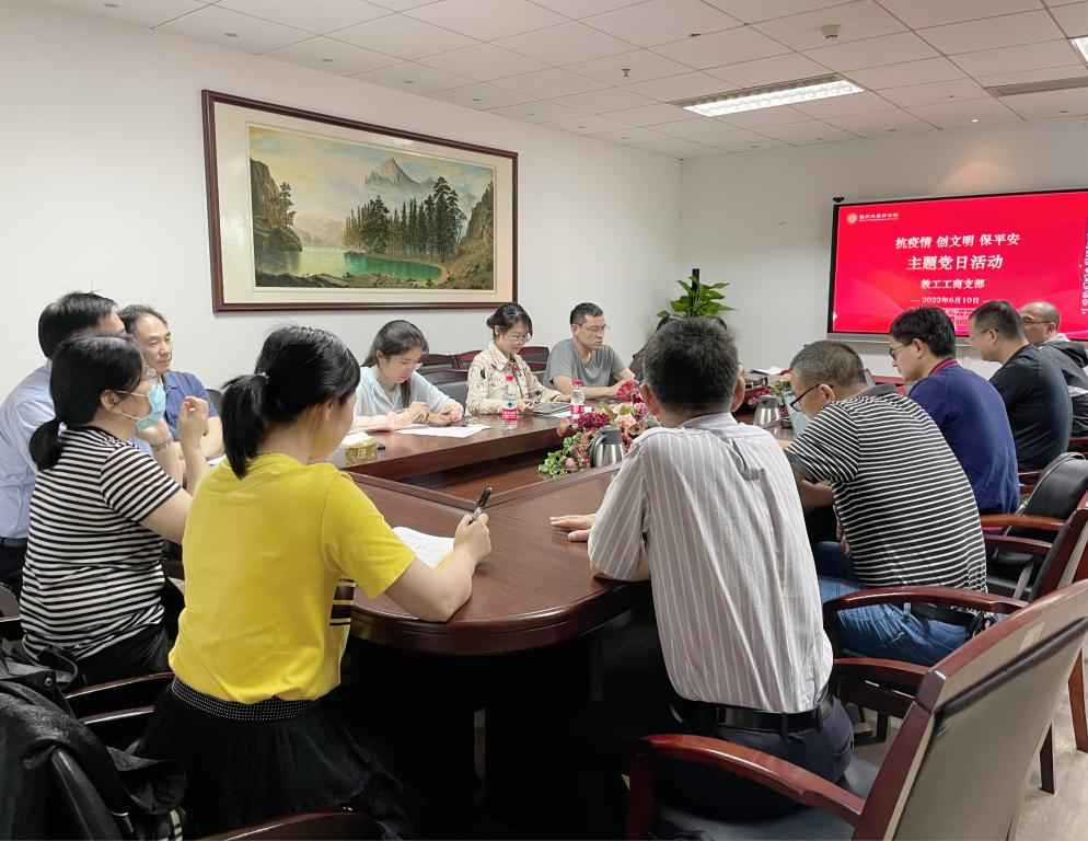 会议室A222举行“抗疫情、创文明、保平安”专题学习会,会议由支部书记龚军姣主持。此次会议,支部党员老师均积极参加,支部还邀请了工商系民主党派和非党员老师参加。