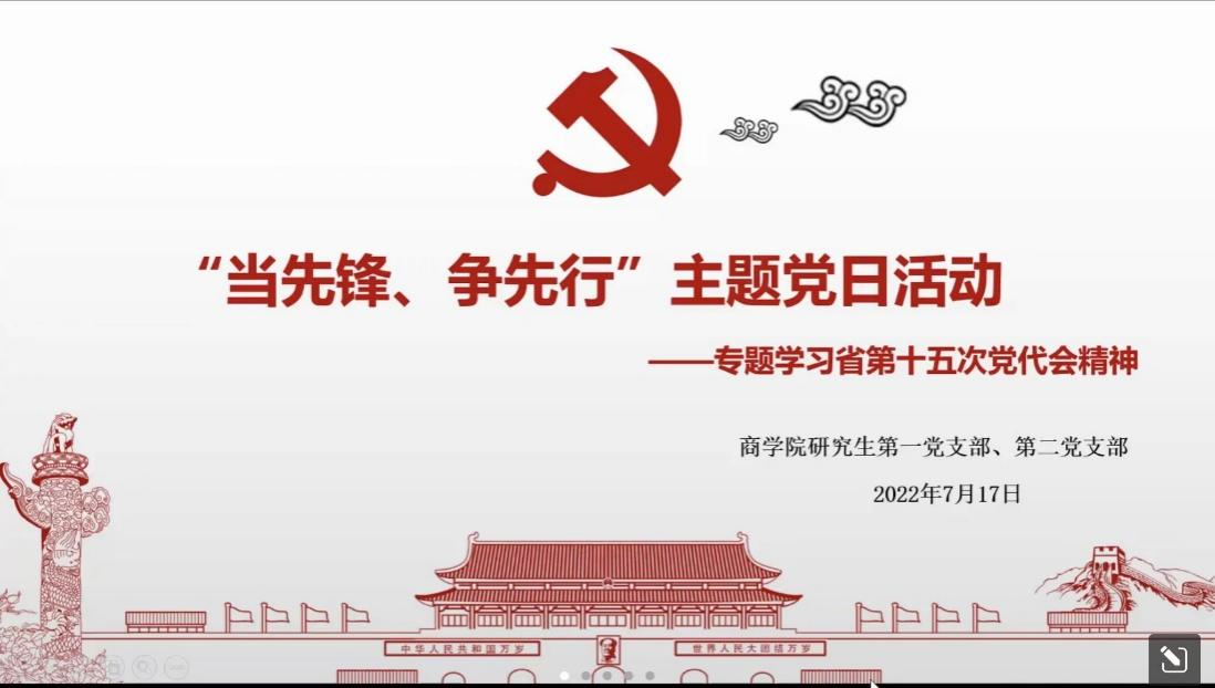 研究生第一、二党支部于线上开展了主题为“当先锋、争先行”的集中专题学习活动。会议由研究生第一党支部副书记陈维奇同志主持。两个研究生支部共52名党员参加会议。
