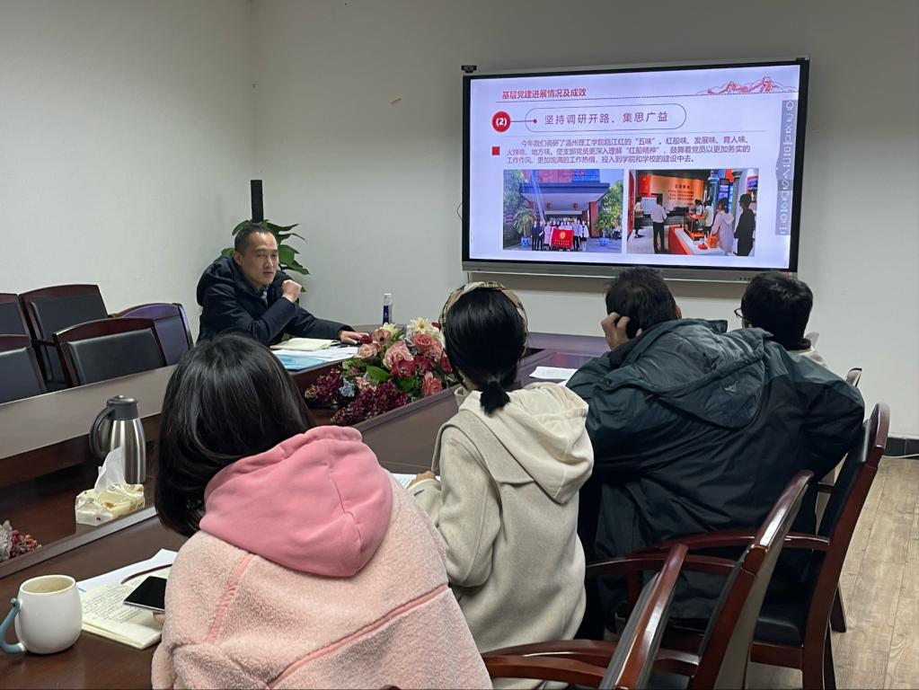 会议分为重温入党誓词、2022年总结暨支部书记上党课、省委十五届二次全会精神学习、批评与自我批评、民主评议5个环节。会议紧紧围绕深入学习习近平新时代中国特色社会主义思想和党的二十大精神,学习习近平总书记在党的二十届一中全会上的重要讲话精神,学习党章、《关于新形势下党内政治生活的若干准则》《中国共产党党内监督条例》等有关党内法规和党中央关于民主生活会的有关要求,进一步深化认识、统一思想,坚固打牢思想基础。与此同时,本次会议紧密结合实际,深入学习领会习近平总书记对浙江工作的重要指示精神,深入学习省第十五次党代会、市第十三次党代会精神,深化学习领悟,提高教工党员自身的政治素养,把握标准要求,增强思想自觉和行动自觉。