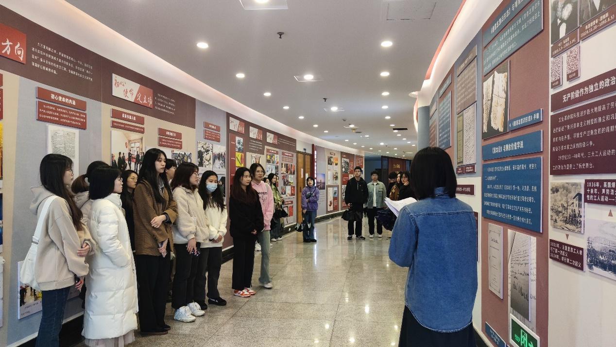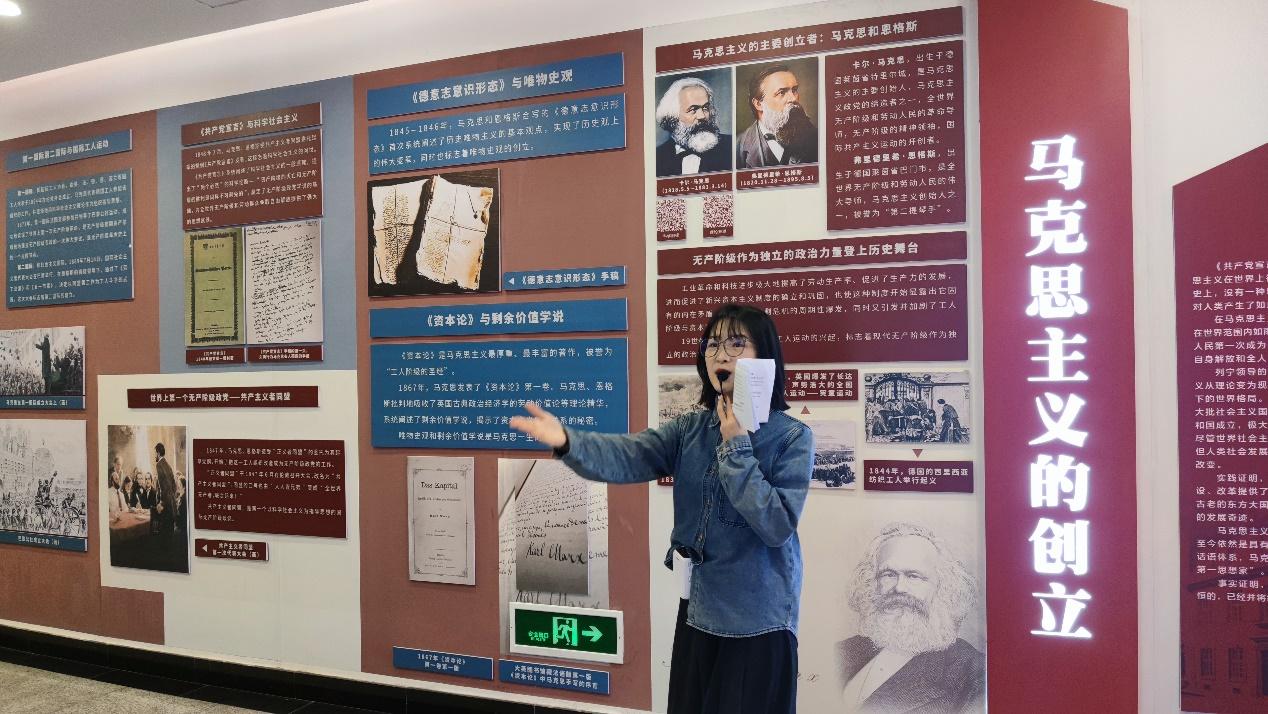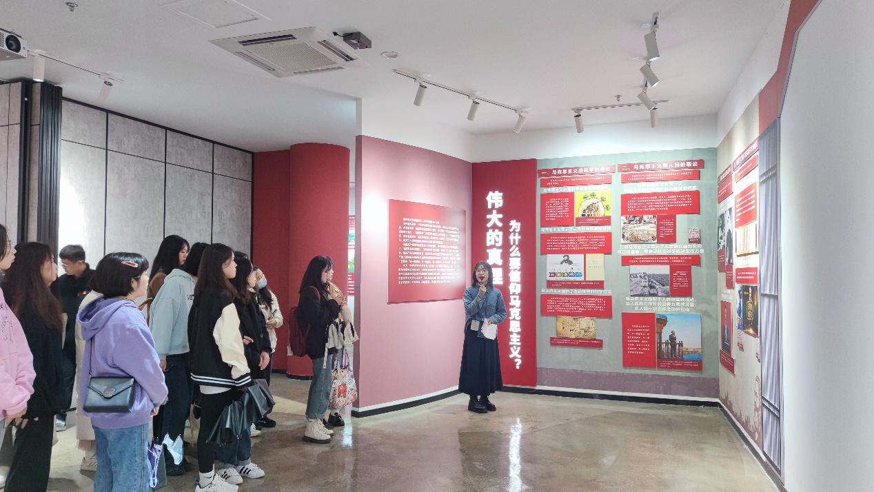 首先,全体党员同志在讲解员的带领下参观了温州大学马克思主义理论教育基地。马克思主义理论教育基地建设立足青年学生,面向全社会,精心打造三大板块内容:廊道板块有马克思主义的创立和发展、中国共产党的初心与使命两个部分;室内实体板块包括真理与信仰、苦难与辉煌、认同与自信、梦想与奋斗、奋进与复兴五个单元;虚拟板块包括走近马克思、中流砥柱、五星红旗、“一带一路”四个专题,旨在增强马克思主义理论教育的生动性和实效性,为培育德智体美劳全面发展的社会主义建设者和接班人发挥重要作用。在讲解员详细生动地解读下,全体党员同志深刻领悟了党的百年奋斗历程恢弘如史诗,感受到了马克思主义理论的魅力,领略了习近平新时代中国特色社会主义思想迸发的蓬勃生机。