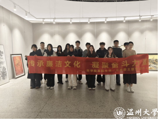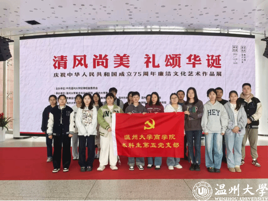 本科生第一、二、三、四、五党支部及研究生第一、二党支部特组织各支部学生党员、入党积极分子前往温州大学北校区美术馆参观“清风尚美 礼颂华诞——庆祝中华人民共和国成立75周年廉洁文化艺术作品展”。