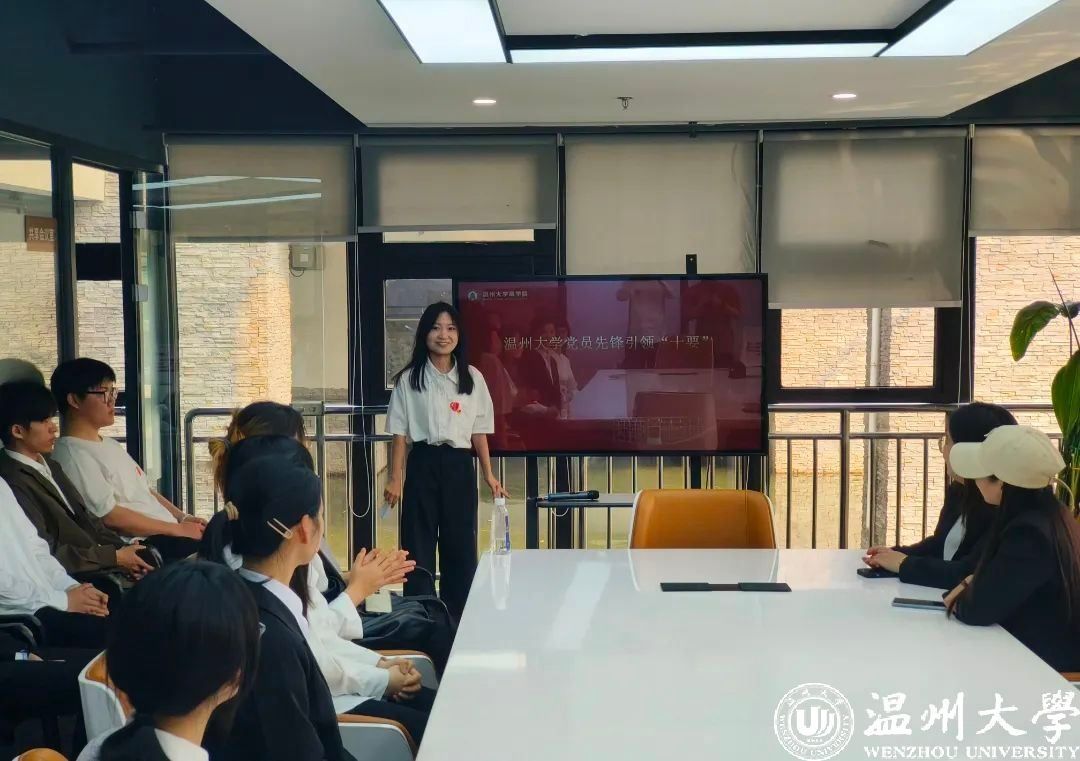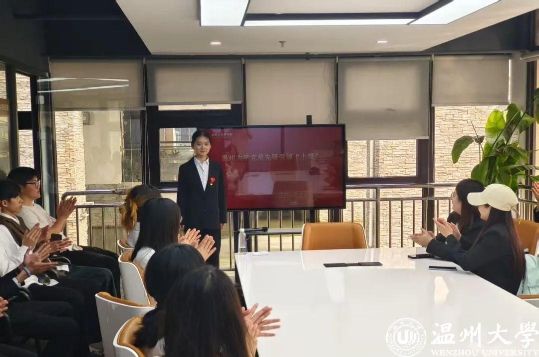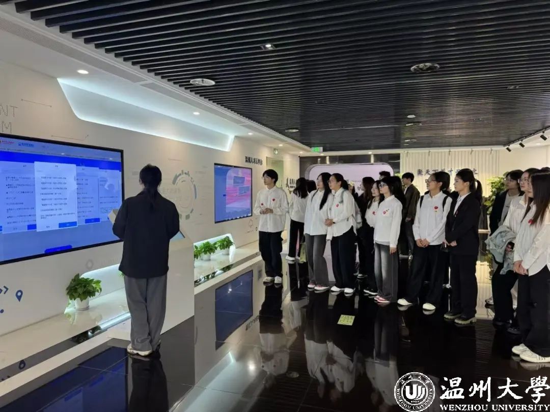 在瓯江红党建人才中心,党支部书记张春洋以“传承红色基因,担当时代使命”为主题开展专题党课。课程紧密结合2025年全国两会精神,重点解读了教育现代化、乡村振兴等国家战略部署。针对支部学生党员特点,课程设置了“红色商道案例分析”“新时代青年责任”等互动环节,引导学生将专业学习与国家发展需求相结合。并且现场学生通过扫码参与线上答题,实时检验学习成效。