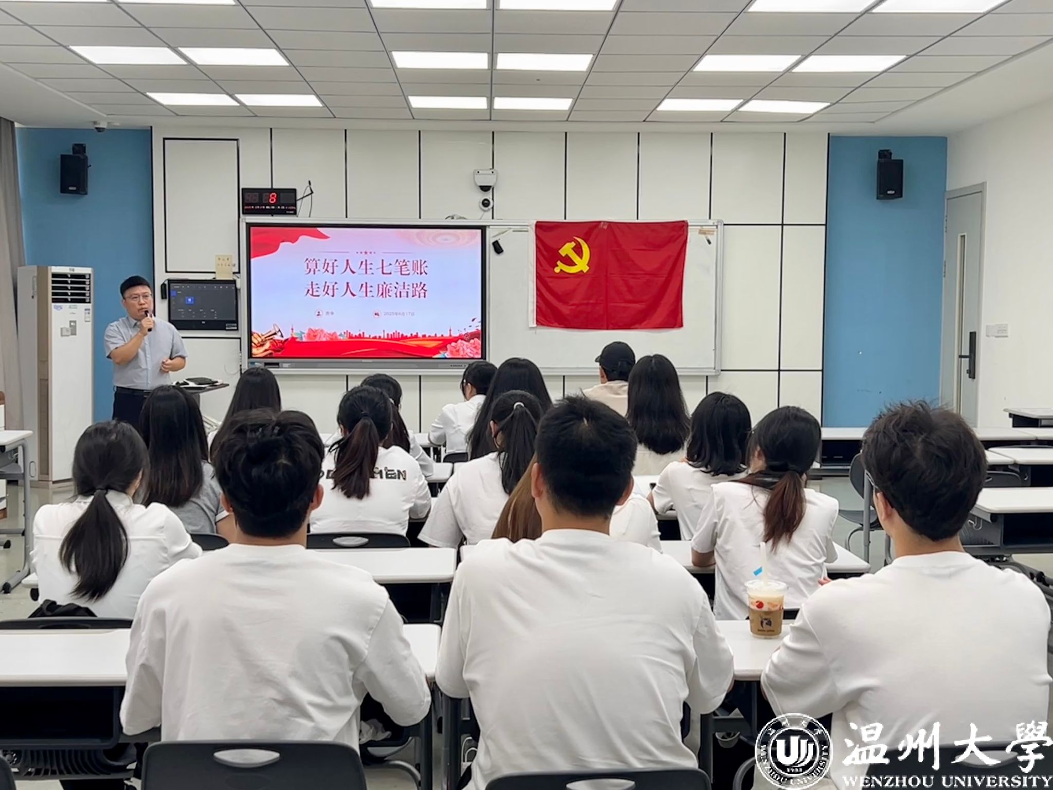 党委书记唐华为支部毕业生党员讲授了专题党课《算好人生七笔账 走好人生廉洁路》。他深入浅出地阐述了人生七笔账的重要意义,从政治账、经济账、名誉账、家庭账、亲情账、自由账到健康账,提醒大家时刻保持清醒的头脑,算好每笔账,坚守廉洁底线。他强调,作为新时代的共产党员,要按照 “忠诚干净,担当尽责”的要求,树立正确的世界观、人生观、价值观,从意识深处形成正确的权力观、政绩观、事业观,筑牢预防腐败的思想防线,做到心有所畏、言有所戒、行有所止,在未来的人生道路上走得更加稳健、更加坦荡。
