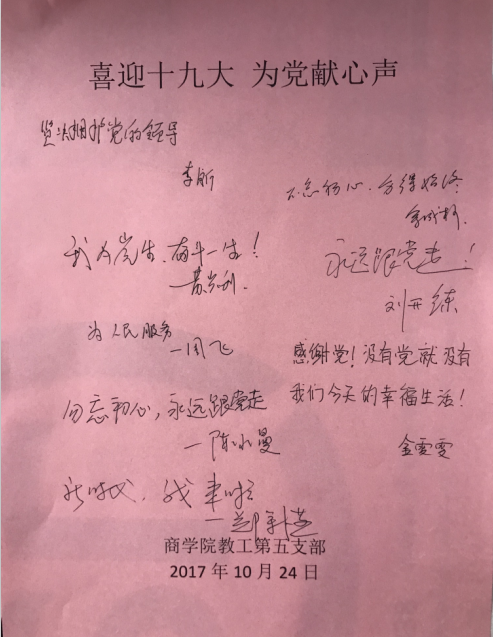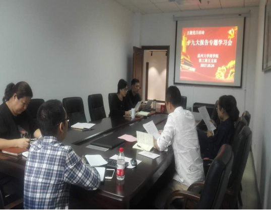 教工党员第五支部举行“十九大”报告专题学习会,院党总支书记郑彩莲、院党总支副书记刘开练、支部党员参加本次学习会。