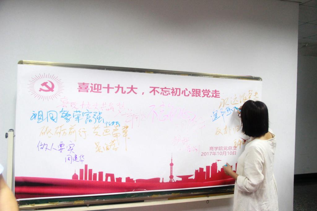 昨日,我院党总支组织开展了“喜迎十九大”主题党日签名活动。院领导班子成员、党总支委员、各教工支部书记等教师代表在“喜迎十九大,不忘初心跟党走”签名版上畅所欲言,写下了对祖国母亲的深深祝福。