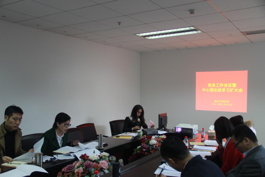 3月17日上午,我院召开本学期第一次党务工作会议暨中心理论组学习扩大会,院党总支书记郑彩莲,副书记刘开练,副院长罗建利,各总支委员及支部书记参加会议。会议由刘开练副书记主持。