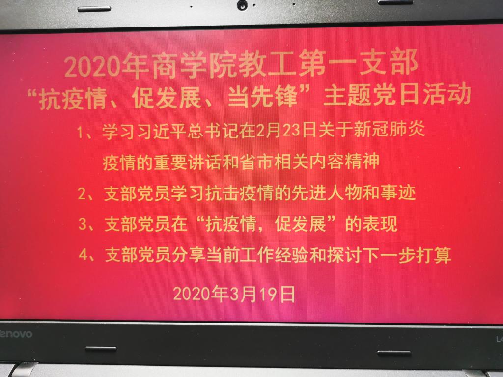 教工第一党支部在3月19日(周四)晚上8点-10点以“不见面”形式在腾讯会议开展“抗疫情、促发展、当先锋”支部主题党日活动。会议由支部书记周建华老师主持。