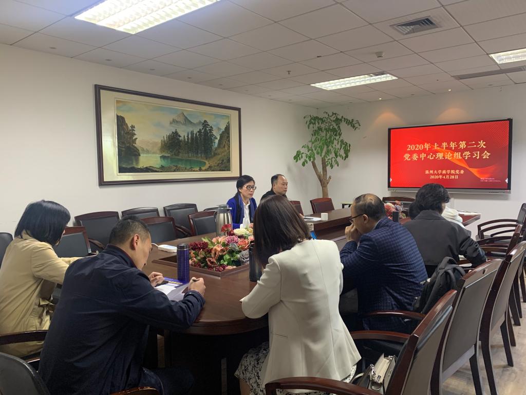 党委书记郑彩莲主持召开2020年4月份党委中心理论组学习会,学习贯彻落实习近平总书记浙江考察讲话精神,并传达浙江省教育系统全面从严治党工作暨清廉学校建设推进会精神。银河赌场