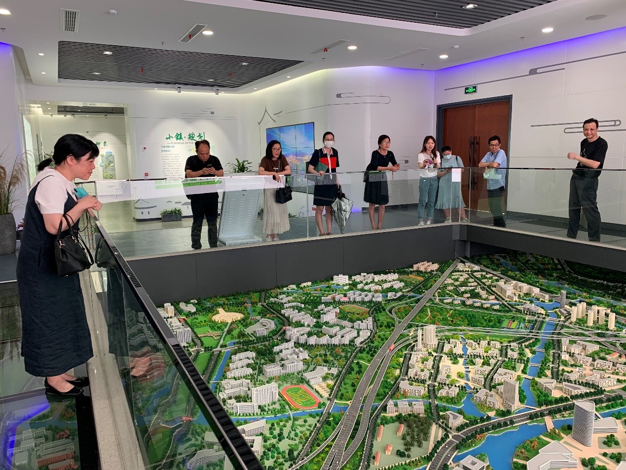 在支部书记黄兴利的带领下,支部党员和学生来到了温州生命健康小镇,在马小跳讲解员的带领下,支部党员首先来到了小镇客厅,观看了图文展播知识,详细讲解了小镇的发展历程与基本情况,并通过内厅总规沙盘,将小镇3.5平方公里的微缩全景尽收眼底。同时观看了小镇形象宣传片,片中对小镇医疗科研、人才资源、交通、生态环境等优势特色的介绍,让大家直观感受到小镇的精彩魅力和未来无限美好的发展前景。