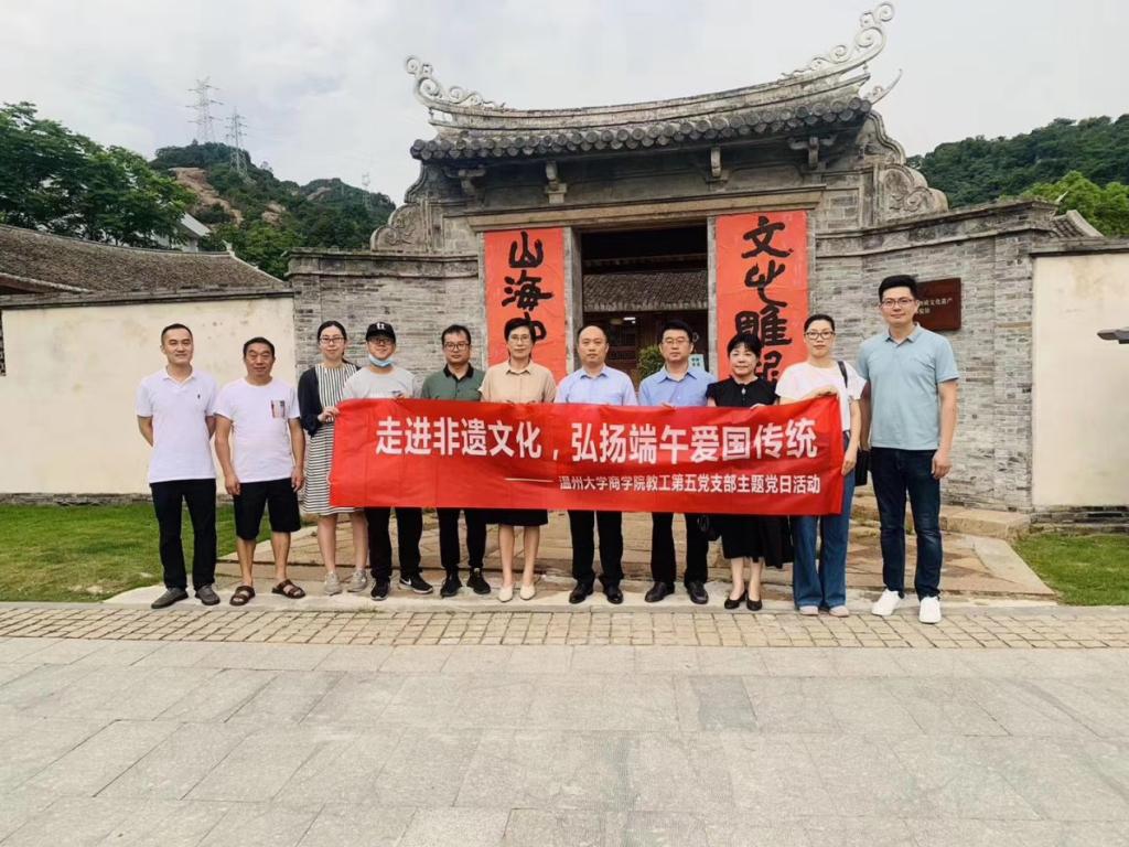 教工第五党支部组织教师党员赴龙湾非物质文化遗产体验馆开展以“走进非遗文化,弘扬端午爱国传统”为主题的党日活动。