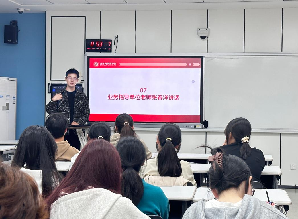 最后,张春洋老师对社团的发展提出了建设性的意见,希望社团发展正规化,合乎温州大学社团发展规定,同时提出对社团安全信息的保护及社团活动主题的鲜明性提出建设性意见。