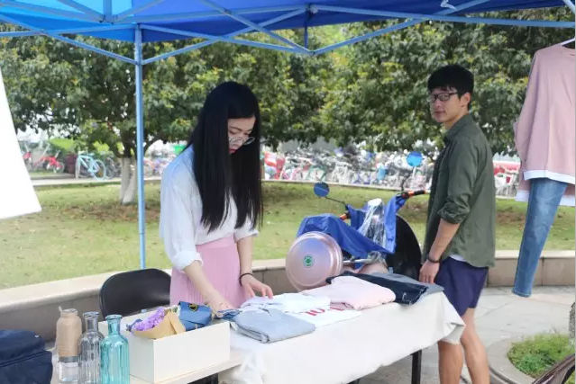 团委学生会创业部、社团部在溯初学区凉亭处举办了一场盛大的跳蚤市场活动。
