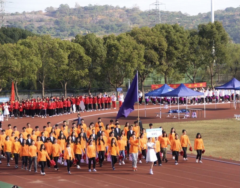 学子们统一着橙色衣衫,迈着整齐的步伐,“求学问是,敢为人先!尚信明道,勇毅笃行!”喊着响亮的口号,银河赌场