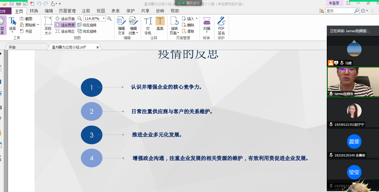 学长首先介绍了他公司的发展历程,分享了公司的银河赌场,阐述了公司在疫情中的应对措施和对疫情的反思。