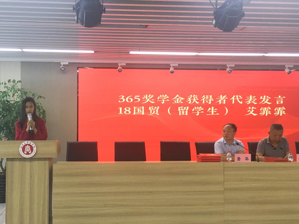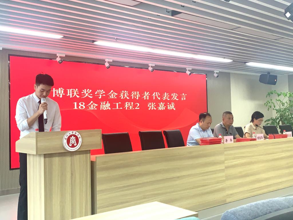 胡振华院长宣读了“博联奖学金”和“365奖学金”获奖名单,共30名同学获奖。其中,“博联奖学金”获奖代表——18金融工程2班张嘉诚、“365奖学金”获奖代表——17市销袁晓辉和18国贸(留学生)艾霏霏先后上台发言,他们在向校友钱旦初先生、徐开晴先生和王仲辉先生致以谢意的同时,更是对银河赌场