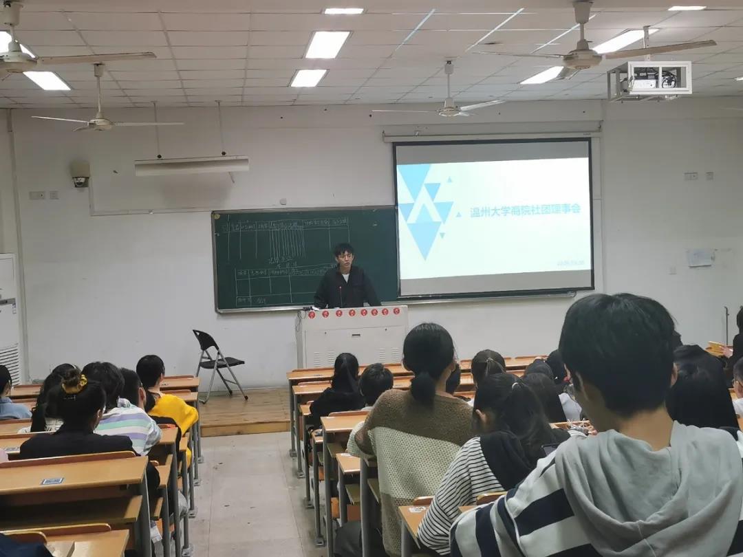 首先,社团部执行部长杨志鹏根据《温州大学学生社团管理办法》,就社团考核相关事项进行了讲解,从社团活动的举办、社团学分、社团星级评定以及干事对接工作等几个方面进行了详细的说明。