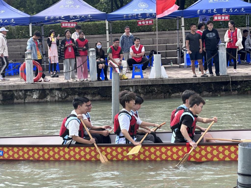 的承办下,温州大学首届校园龙舟比赛顺利举行。本次龙舟比赛共十六支参赛队伍及34名活动裁判。在8:00参赛队员们在温州大学南校水上活动基地集中报到。8:40开幕式开始,温州大学首届校园龙舟赛正式拉开帷幕。