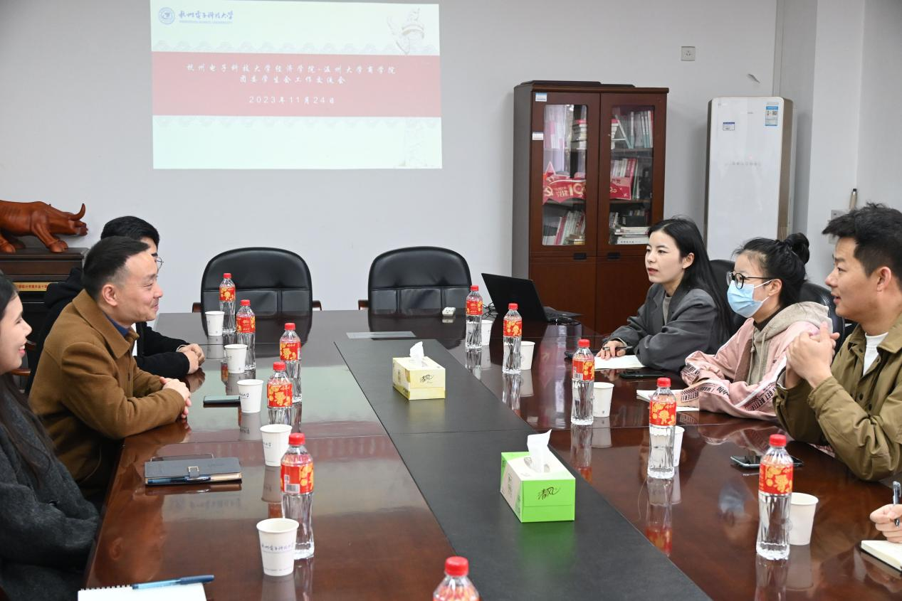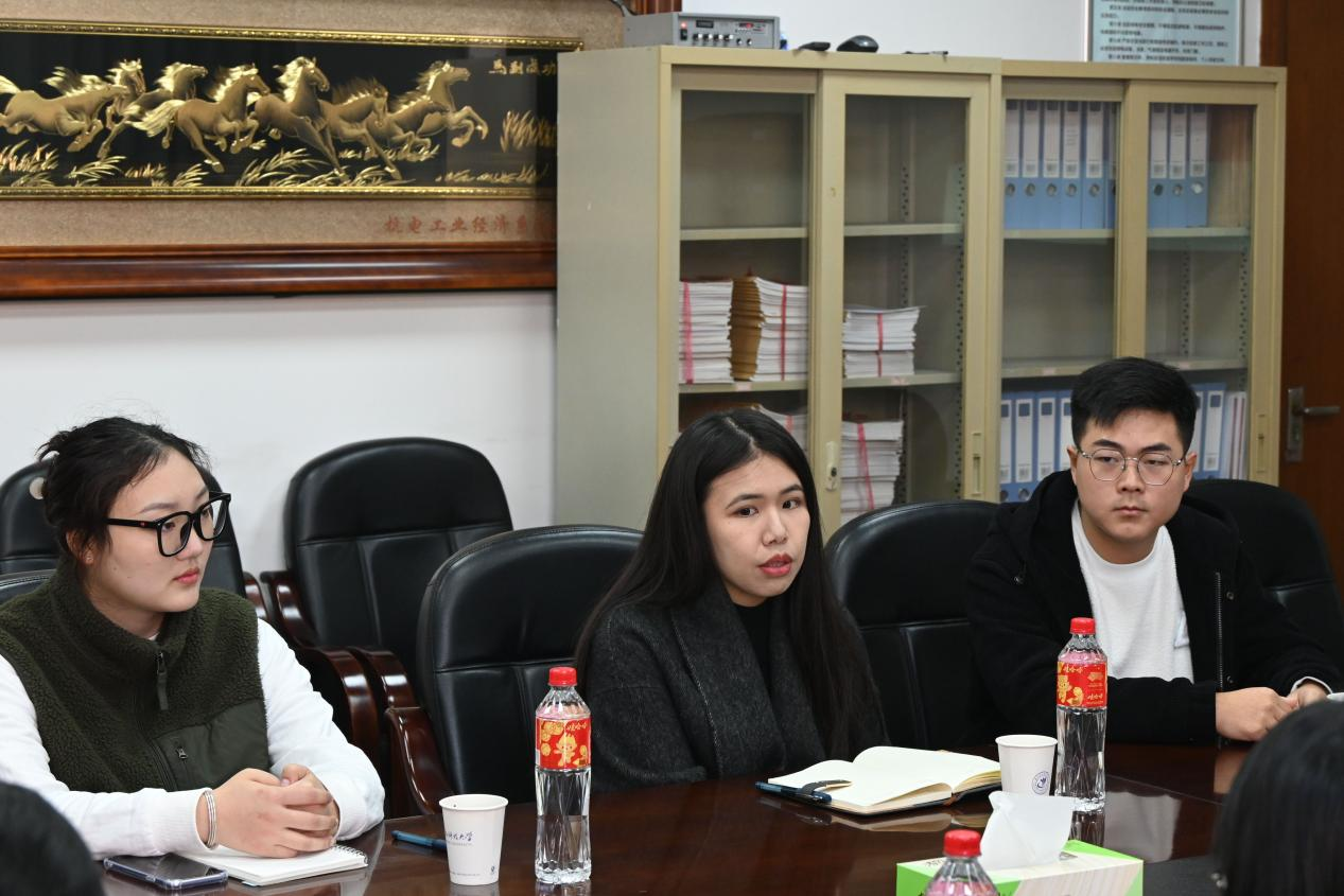 研会指导老师王景欣、学生科辅导员聂海燕和团学指导老师张春洋带领研会主席团、党服主任和团学主席团到杭州电子科技大学经济银河赌场