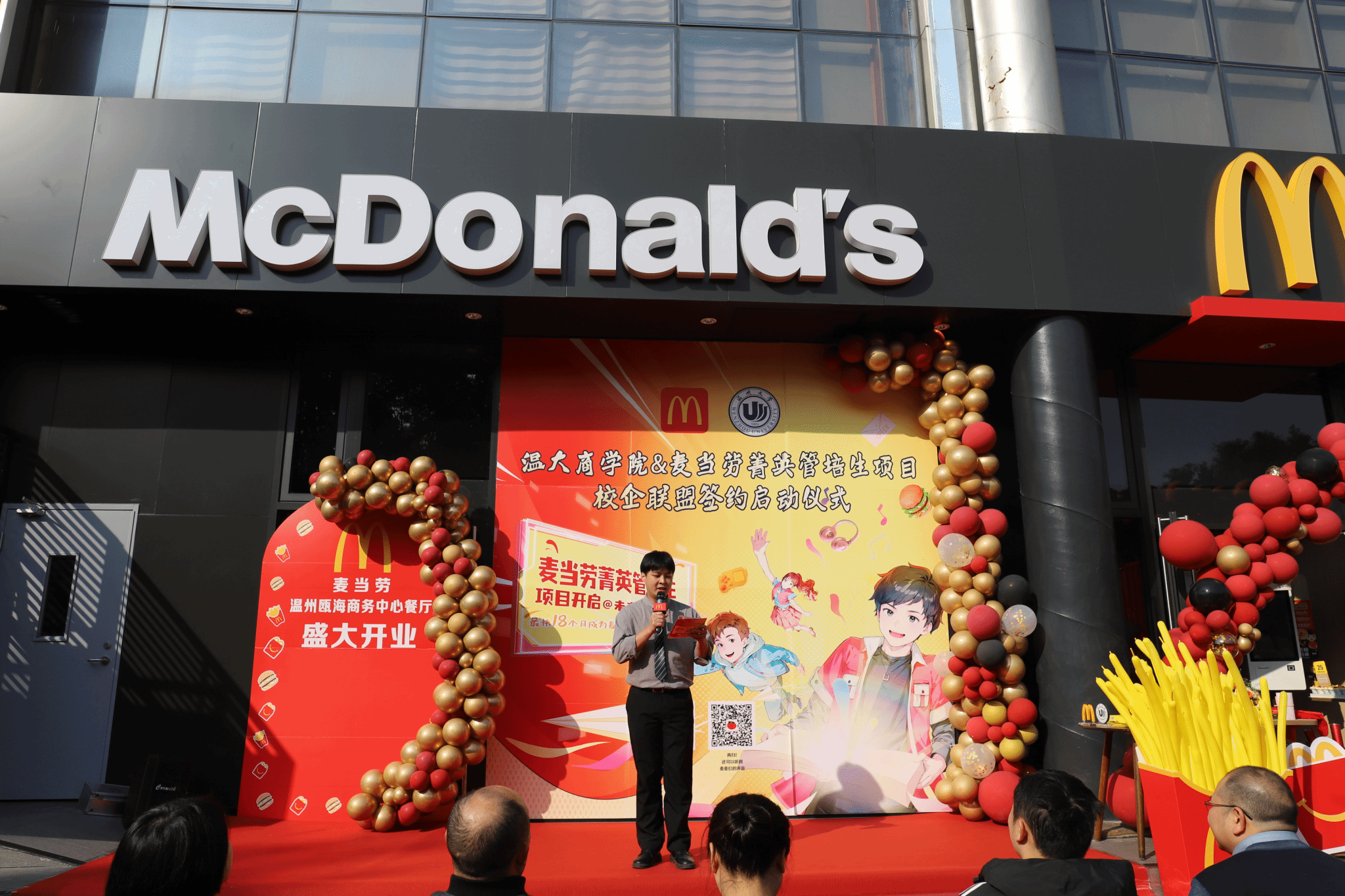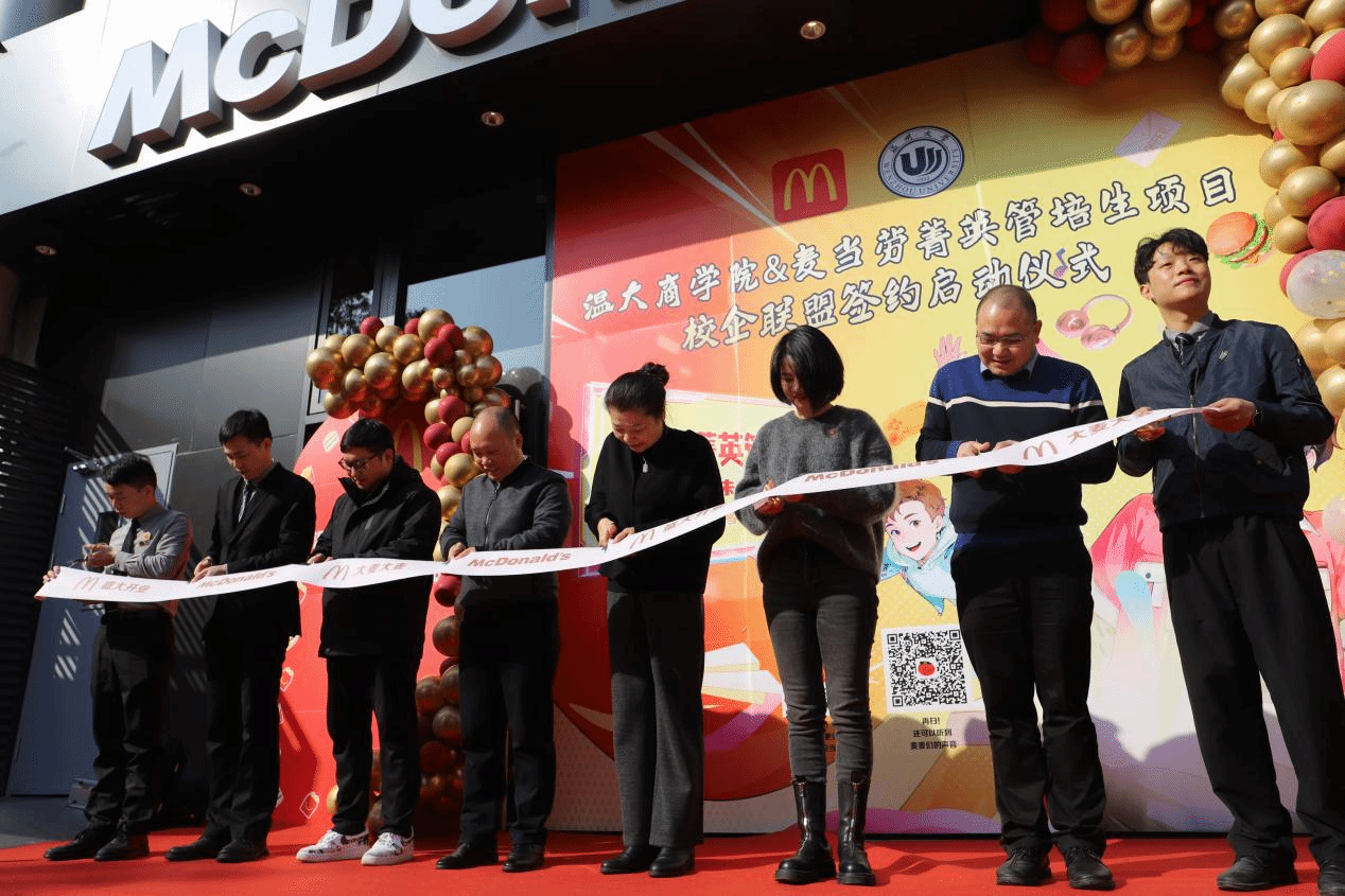 领导与麦当劳代表共同进行了剪彩仪式,象征着校企合作关系的正式启动。