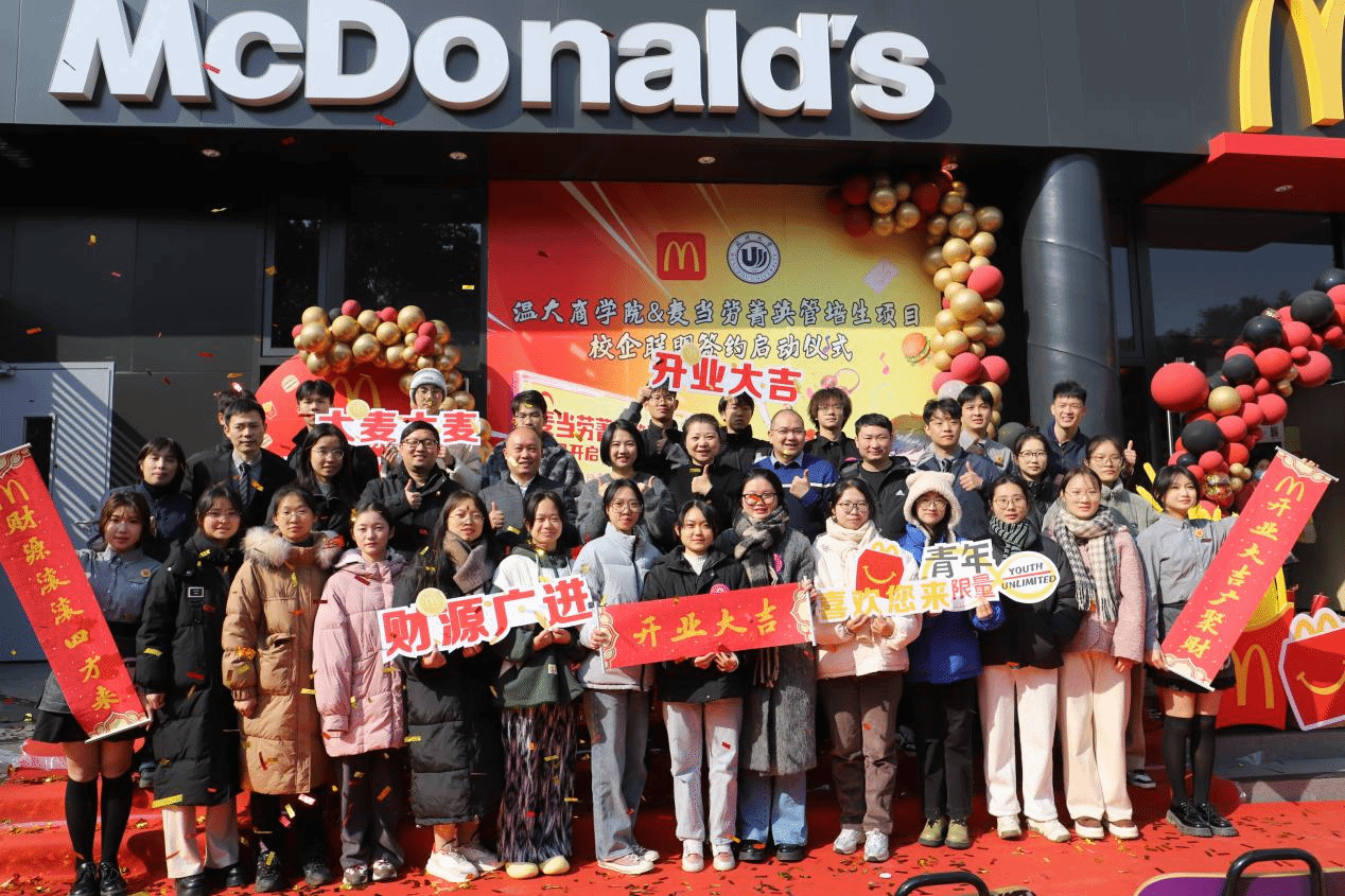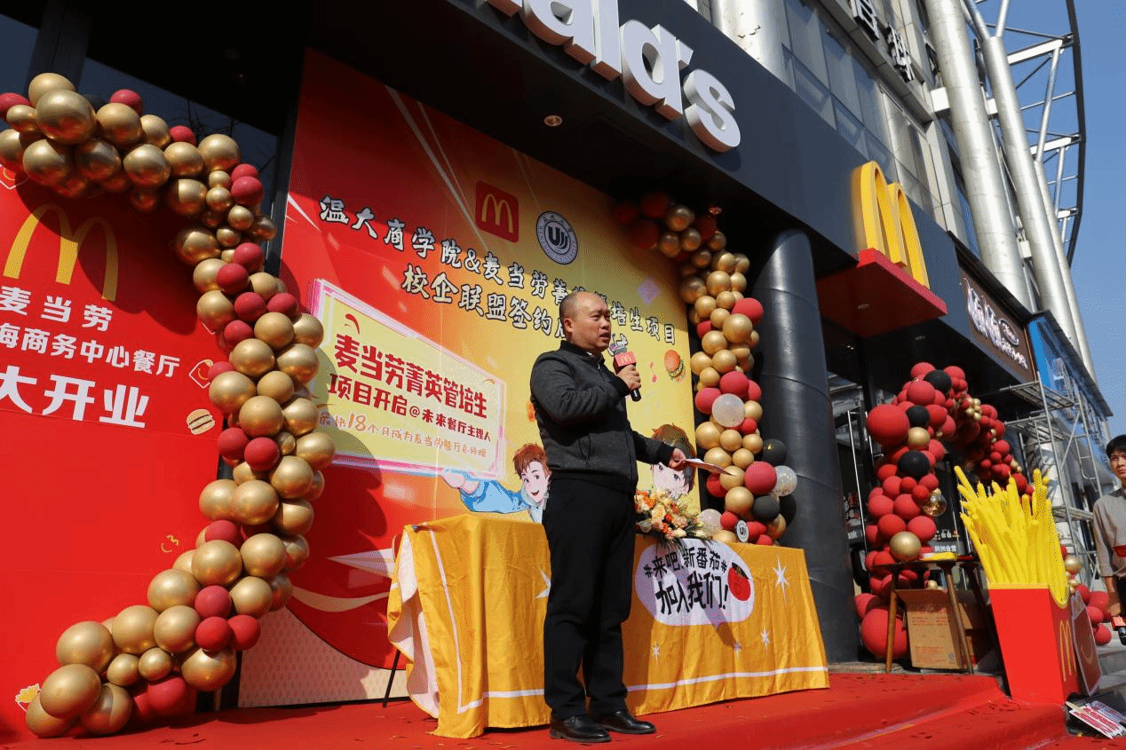 跟岗干部方嘉奇、专任教师李慧慧、辅导员张元祝与麦当劳高管共同参与此次活动。此次合作将为广大学生提供更多实践机会与职业发展平台,培养学生适应未来社会需求的能力。