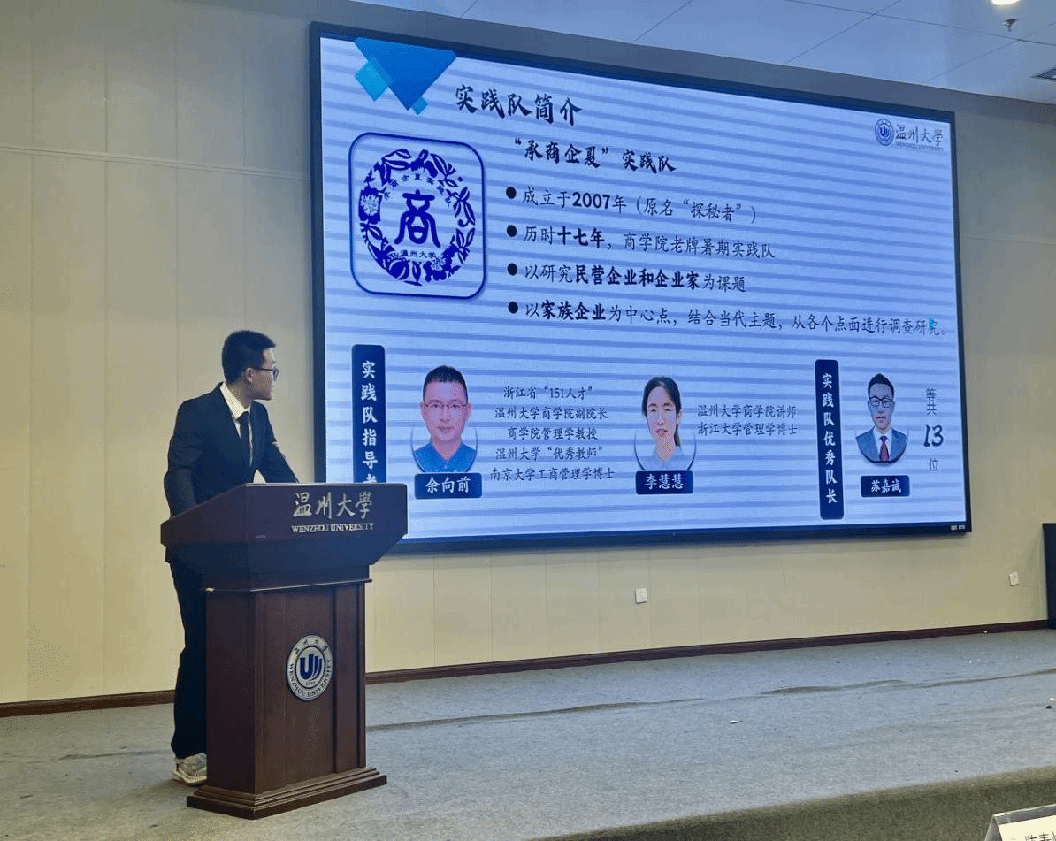 承商企夏实践队成立于2007年(原名探秘者),是银河赌场 一支以研究民营企业和企业家为课题的暑期社会调研实践队。实践队历年来以家族企业为中心点,结合当代主题,从各个点面进行调查研究。实践队调研内容也成功在学校大挑研究课题立项。苏嘉诚队长介绍了实践队的发展历程、活动内容及活动意义,强调该实践队旨在提高学生的社会适应能力和实践能力,同时增进同学们对温州本地企业的了解,提升大家的认知和了解。苏嘉诚队长的发言内容将大学生活与社会生活紧密联系起来,使在场的同学们都深受触动。