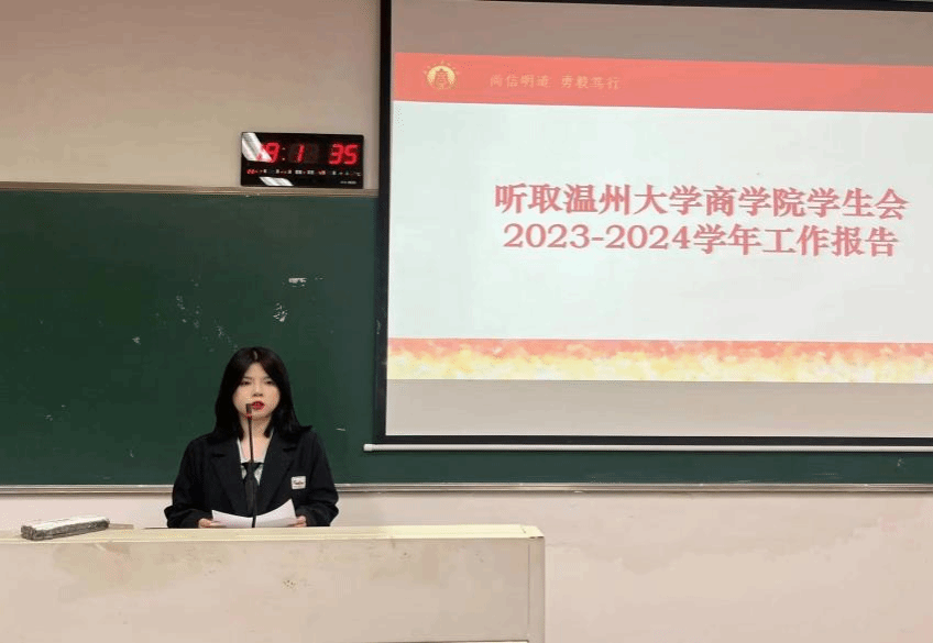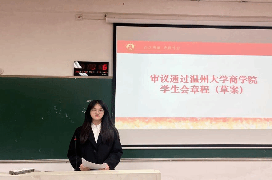 学生会执行主席王文钰在正式会议中做银河赌场-澳门银河赌场官网