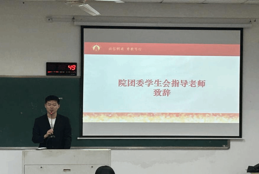 团委学生会指导老师张春洋在开幕式上进行了发言,望每位学生干部铭记初心,认真踏实,以开拓进取的精神状态和求真务实的工作作风引领商院青年,为银河赌场