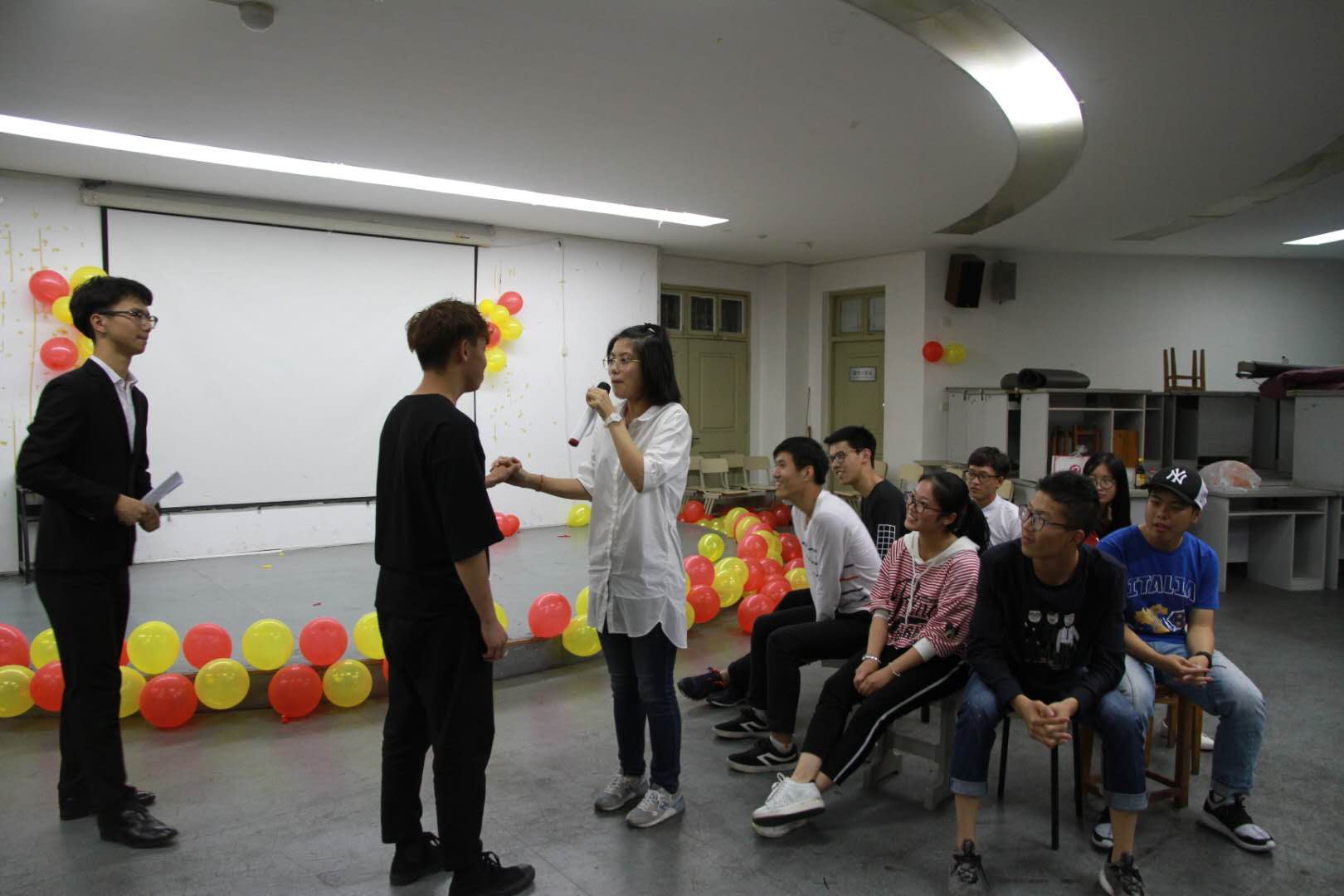 开场之初,主持人发起的可爱活泼的兔子舞调动了全场的热情,随后的游戏环节更是精彩连连,除了经典的“抢凳子”、“逢X拍手”和“解手链”游戏,实践部还准备了新颖的“客官,你要几碗胡辣汤”、“五毛一块”和“给‘地’一个吻”游戏。这些游戏同时考验了大家的团队协作能力和智商。主持人给出的题目更是让人脑洞大开,在场的朋友们笑声掌声声不断。