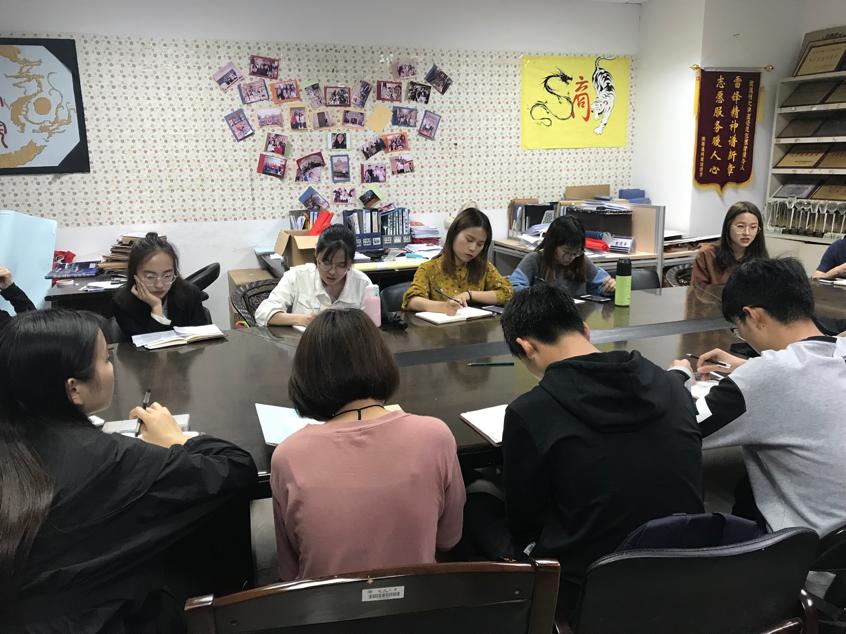 团委副书记陈扬、学生会主席熊思萍、副主席李圣洁以及全体团学部长共同参加了此次会议。本次会议旨在对这一个月进行经验总结并对接下去的工作做好一个合理的安排。