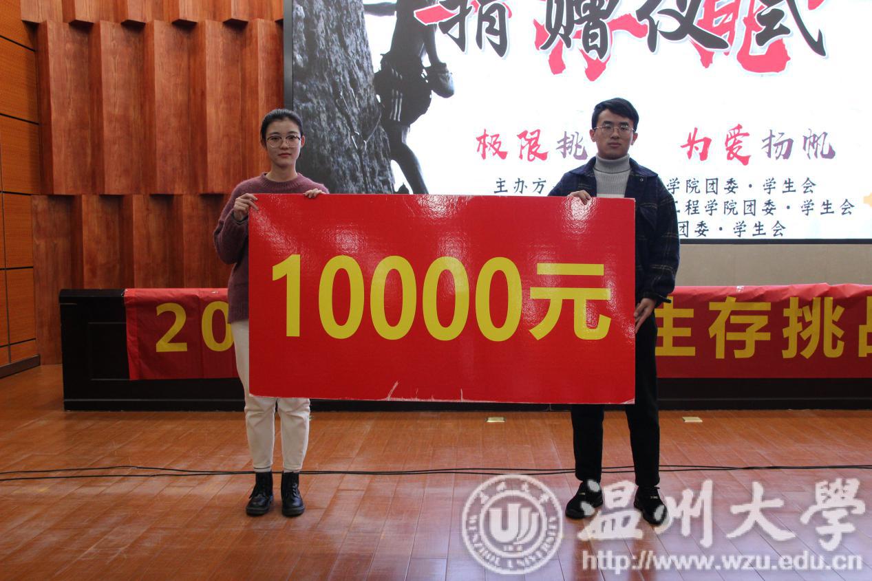 组织部部长将生存挑战赛募捐所得交给爱星缘机构的代表崔正强老师。
