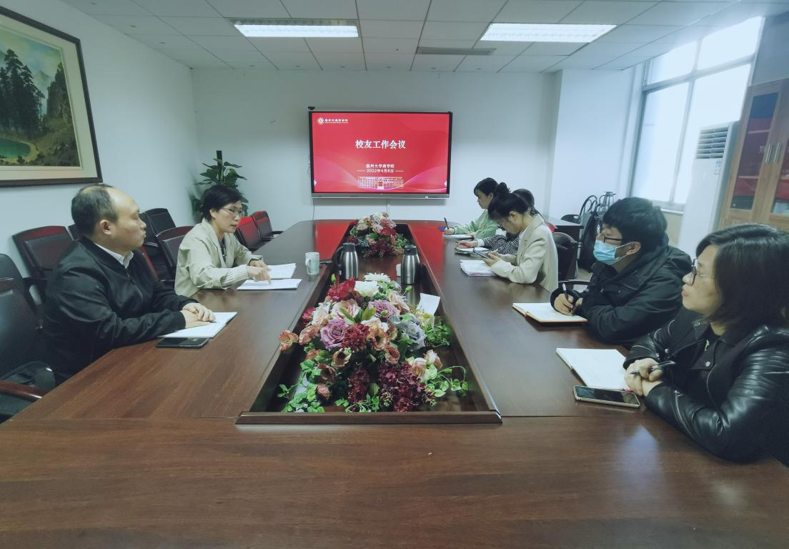 “谭伟鸿奖教金”设立相关事宜、校友库数据完善、校友沙龙、校友奖学金发放、第七届融商杯及温州大学办学89周年系列活动等事宜。郑彩莲书记针对相关事宜做出部署。