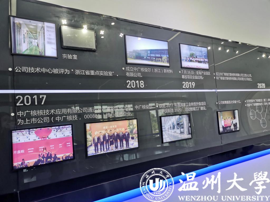 参观伊始,师生们在中广核俊尔(浙江)新材料有限公司朱春光副总的带领下参观了企业的发展历程,对企业近三十年从一家小型电缆料公司发展到如今拥有700余名员工,销售额破20亿的高性能工程塑料研发生产企业的历程有了初步了解。师生们深切感受到在发展过程中企业对创新的追求和对技术突破的执着与努力,同时体会到企业在将近三十年间的责任心与爱国情怀。