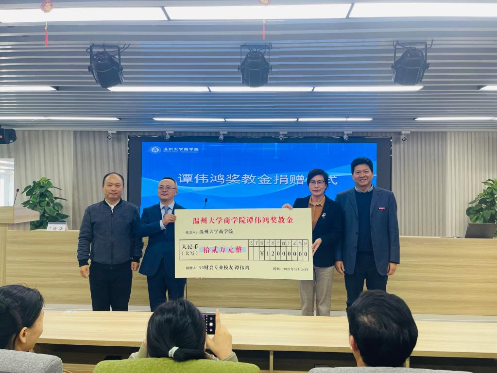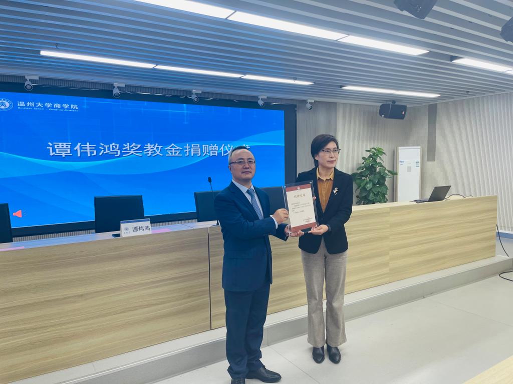 接受谭伟鸿校友的首期捐赠款12万元,并为他颁发捐赠证书。随后,校党委副书记庄兴忠为谭伟鸿校友颁发银河赌场
