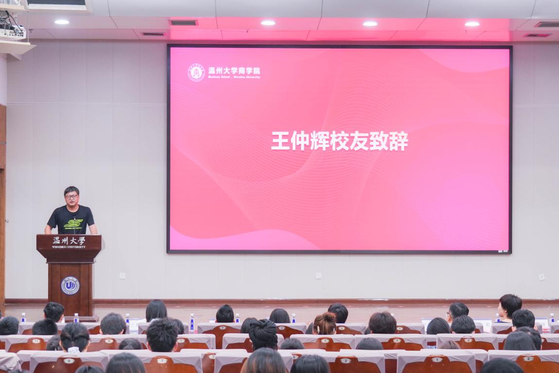 王仲辉校友发表讲话,他对获得第五届"365奖学金"的师弟师妹们表示热烈祝贺,并带来了精彩的演讲。随后,李密书记宣读银河赌场-澳门银河赌场官网
