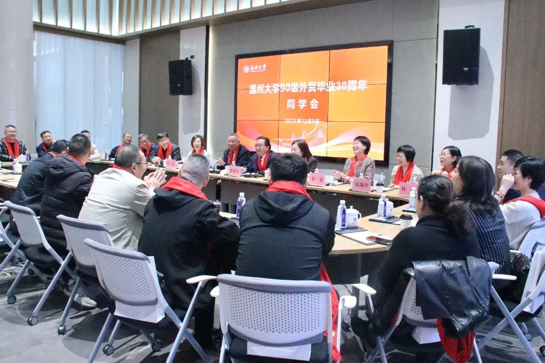 2023年12月9日,90级外贸经济专业校友返校举行毕业30周年同学会。26位校友如约而至,共同奔赴这场久别重逢。一张张笑脸依然亲切,一声声呼唤宛如从前。