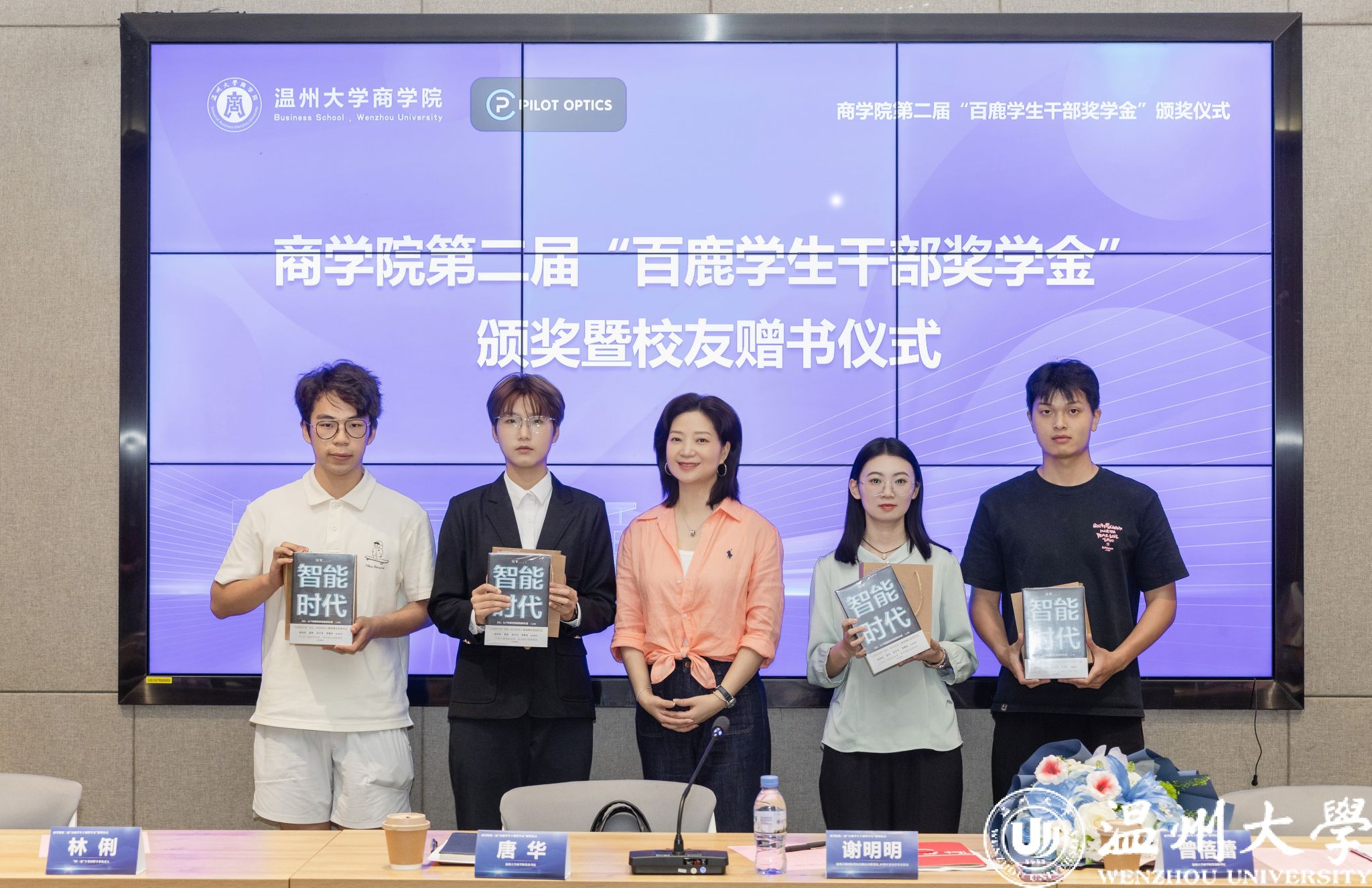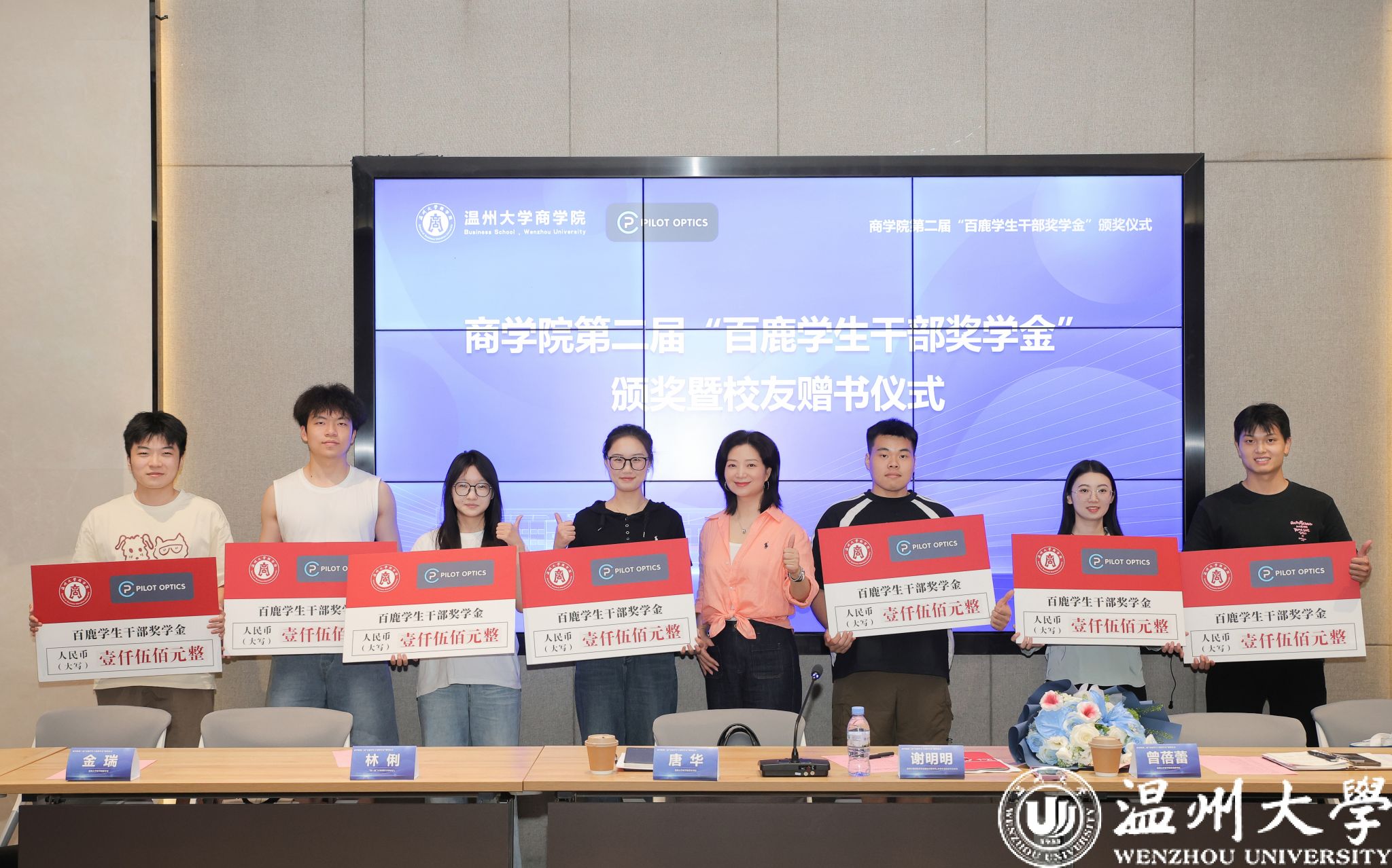 2025年6月23日,银河赌场-澳门银河赌场官网 第二届“百鹿学生干部奖学金”颁奖仪式在南校区校友之家一楼会议室隆重举行。“百鹿学生干部奖学金”设立者、温州百鹿国际贸易有限公司董事长、97届外贸经济专业谢明明校友,银河赌场 党委书记唐华、党委副书记曾蓓蕾、国贸专业负责人林俐等银河赌场 教师,与第二届“百鹿学生干部奖学金”获得者共同参加了颁奖仪式。