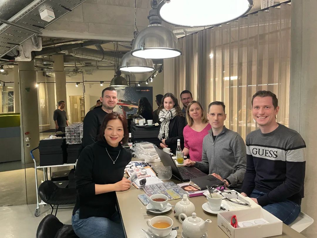 于是,谢明明和先生成立了攻关小组,和公司的技术人员一起,查阅大量的中外技术文献,将眼镜的每一个小小配件、每一种材料反复进行研究和测试,失败了就换种材料重来。他们见证了很多个凌晨四点的温州,终于在交货的前一晚,顺利完成了整批货物并通过德国TUV 实验室的测试。谢明明开玩笑说,“从此之后,我又成了化学家了。虽然很累,但是今后这样高标准的单,别人不敢接,我们敢!”